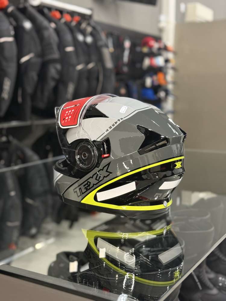 • Possui fixador de viseira EVO TEXX com melhor aerodinâmica e isolamento acústico;